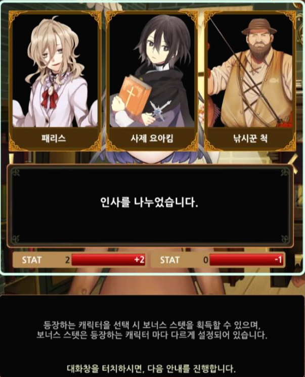 오늘은 천년의 소녀 사교탭의 인물들과 대화시 얻는 스텟을 가져왔습니다